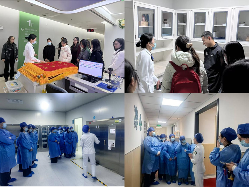 理论学习结束后,在医院管理人员的统筹引导下,学子们分组前往胃肠内科病区与消毒供应室,开启“零距离”实践探秘。在胃肠内科,侯坤护士长全程带队讲解:清晰醒目的导诊标识、科学规划的候诊动线与一尘不染的诊疗环境形成有机整体;治疗室内,微泵、监护仪等设备的线缆被精心缠绕固定,各类耗材按使用频率分层摆放,每一处细节都彰显着“规范中提效”的管理逻辑。消毒供应室的“四步定位法”更让学子们印象深刻。护士长张敏现场演示了物资管理流程:所有物品严格遵循“库-号-层-位”定位原则,小到一枚消毒器械、大到一批无菌耗材,都能实现“精准定位、快速调取”。从办公区域的物品归位,到去污区的流程分区,再到更衣室的规范管理,不同空间的个性化管理方案,让学子们切实看到6S管理“因地制宜、服务实战”的核心要义。